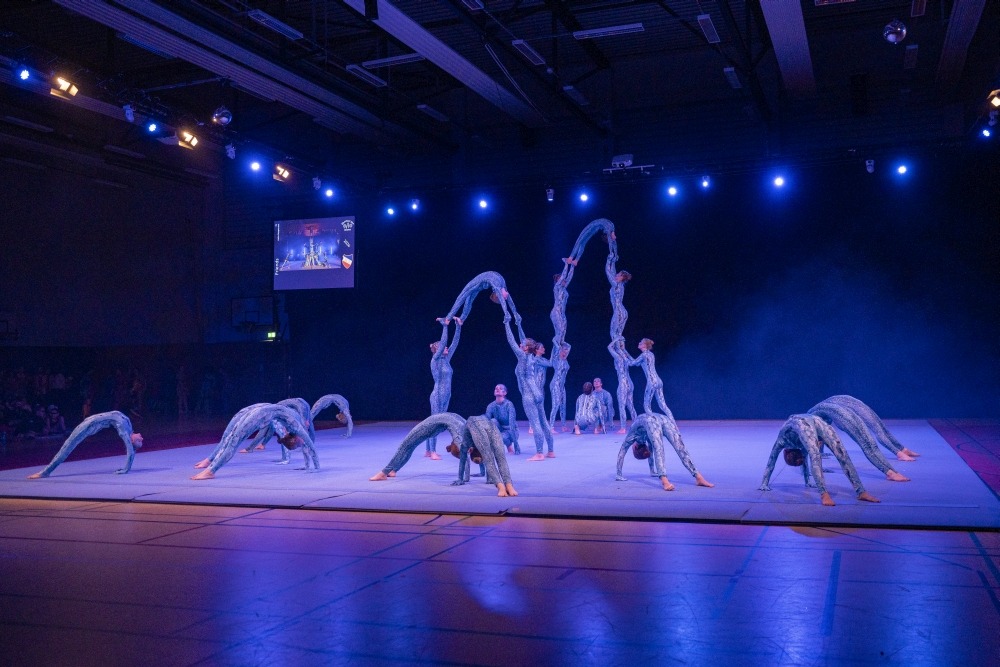 Die Friends zeigten mit Trainerin Isabell Siegel ihre Show „Blueniverse“, die Darstellung eines Universums aus Teilchen, die sich anziehen, abstoßen und im Zusammenspiel das Gleichgewicht wiederherstellen und Großes entstehen lassen.